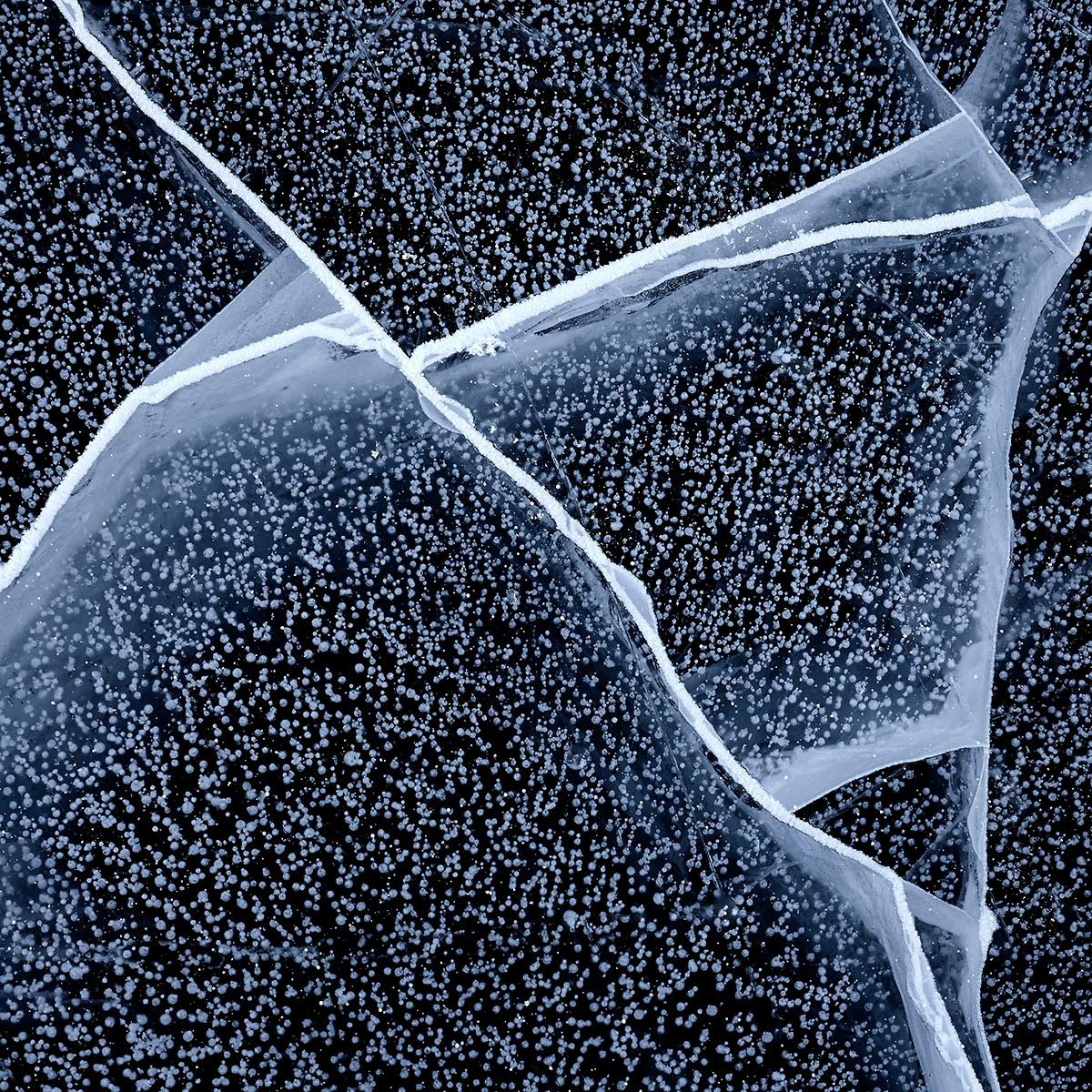 Le incredibili forme prodotte dall'aria intrappolata nel ghiaccio di un laghetto alpino